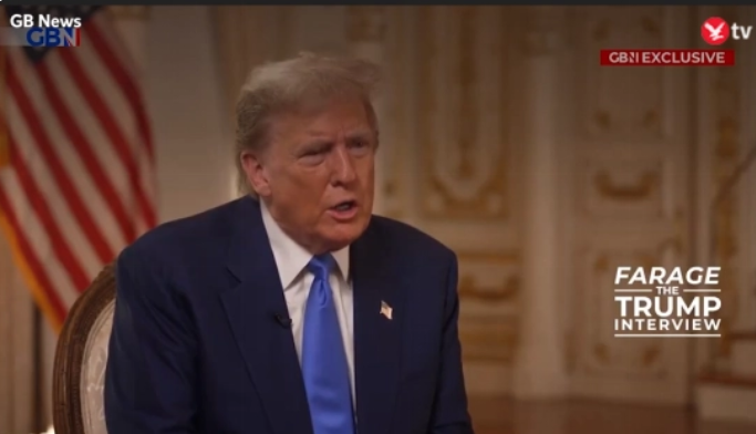 在英媒GBNews本(ben✃)地(di)人(ren)(ren)时19日首播的(de)现(xian)场采(cai)访活动中,美国特(te)朗普回覆掌管人(ren)(ren)提问 图自在英国自力电(dian)视(shi)视(shi)频台